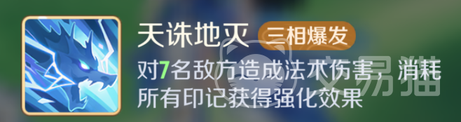 当战斗进入第四回合,终极技能“天诛地灭”将决定战局走向。该技能可对七名敌人造成高额法术伤害,其实际效果取决于当前水法与火法印记的数量对比:若水法印记更多,则此次攻击附带法术穿透效果,有效削弱敌方法术防御;若火法印记占优,则大幅提升暴击率与暴击伤害,适合快速击杀脆皮单位;最理想的情况是两者数量相等,此时将激活持续四回合的特殊状态——每次释放技能有50%概率触发追加攻击,虽第二次伤害有所衰减,但连续打击带来的输出压制极为可观。
