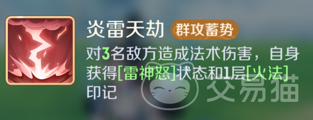 此外,“九龙冰封”是一项兼具控制与范围输出的水系技能,可同时影响四个目标,其中主目标将承受额外伤害。该技能同样能为使用者积累一层水法印记,强化后续输出节奏。而“炎雷天劫”则作为核心群攻技能之一,不仅能对三名敌人造成雷火混合伤害,还会使天宫进入“雷神怒”状态,提升整体输出能力,并额外增加一层火法印记,进一步丰富技能联动的可能性。