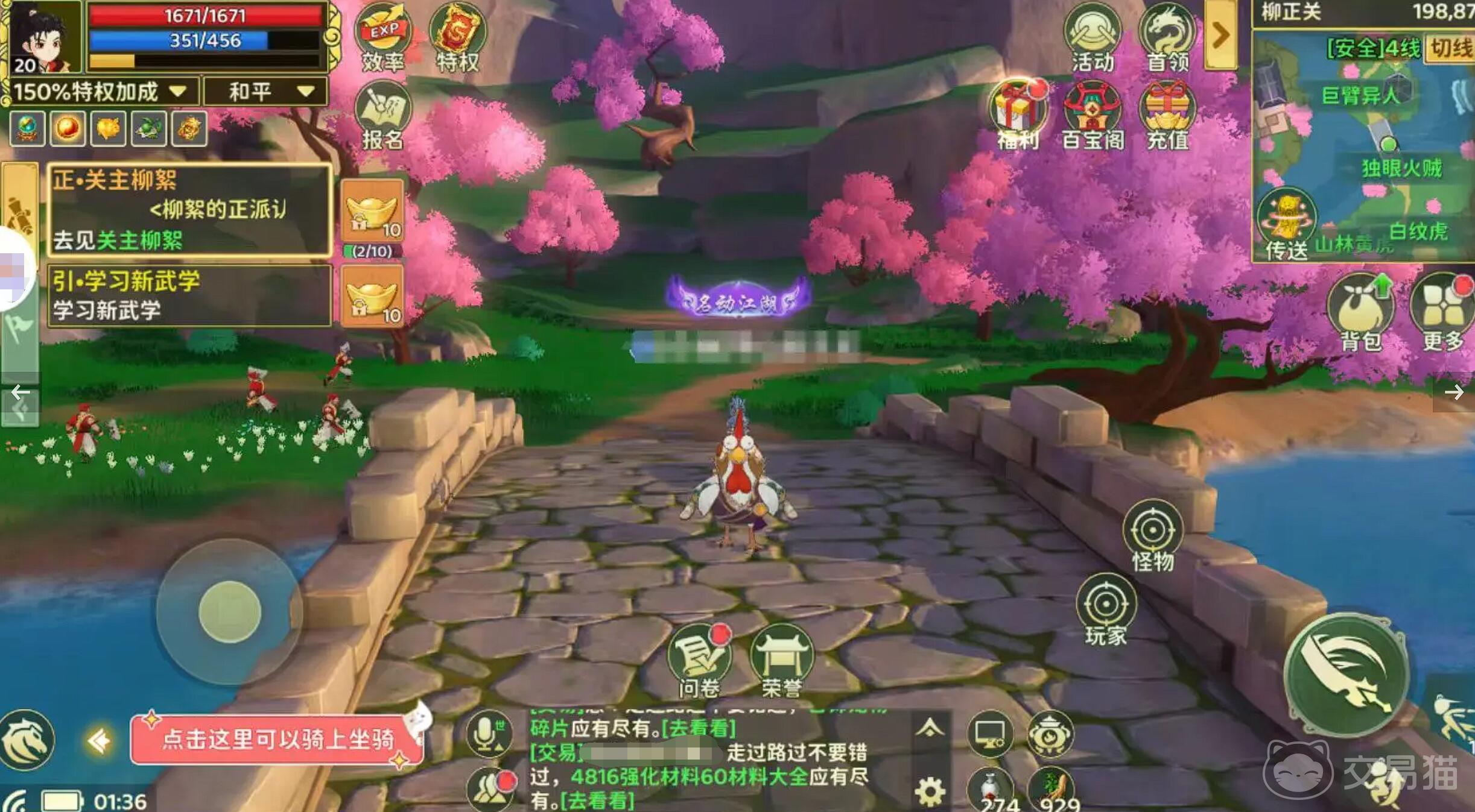 坐骑功能在角色达到30级后开启,完成主线任务“坐骑召唤”即可获得首只坐骑——枣红马。任务完成后前往NPC坐骑商人处领取,初始即提供30%移速加成,外观为普通马匹形态。后续更多坐骑可通过日常玩法和商店兑换获得。例如,每周参与门派跑商活动可积累商票,用于兑换白狼坐骑,其移速提升达40%。连续签到满30天还可领取限时坐骑雪豹,拥有50%移速加成及独特的白色毛发视觉特效。