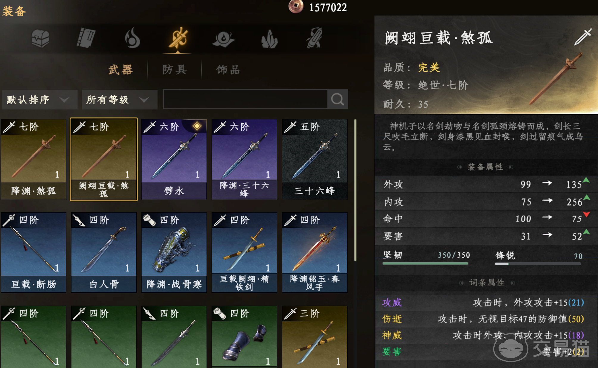 当前版本中最顶尖的装备为金色品质,具备极高的属性加成和不可更改的独特词条。金色武器通常包含基础攻击力、暴击率、暴击伤害、命中率以及要害内功等常规词条,同时还会随机生成专属特殊词条,这些词条在装备生成时即已确定,无法通过强化、洗练或其他方式改变。