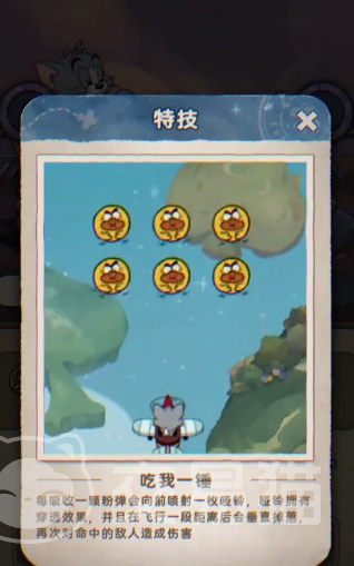 吃我一锤是一项机制独特的主动技能,通过吸收粉弹来触发哑铃喷射。每次吸收后,向前方高速投掷一个具有穿透效果的哑铃,飞行一段距离后垂直下落,并对路径上的敌人造成二次伤害。这种双段打击设计使得技能覆盖区域更广,连续命中时可形成压制性输出,有效干扰敌方走位。