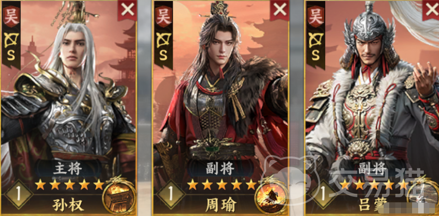吕蒙作为辅助与控制双修角色,使用“道法通幽”强化燃烧伤害,“狂雷天牢”施加禁疗效果,阻止对手恢复生命值,同时“雄姿英发”提供暴击加成,进一步提升输出上限。整套体系运转流畅:孙权制造易伤环境,周瑜点燃大范围火焰,吕蒙补足持续压制,最终形成“易伤→燃烧→斩杀”的完整链条。面对高血量盾兵单位时也能有效压低血线,适用于资源战和联盟攻防场景,实际表现取决于武将养成程度。