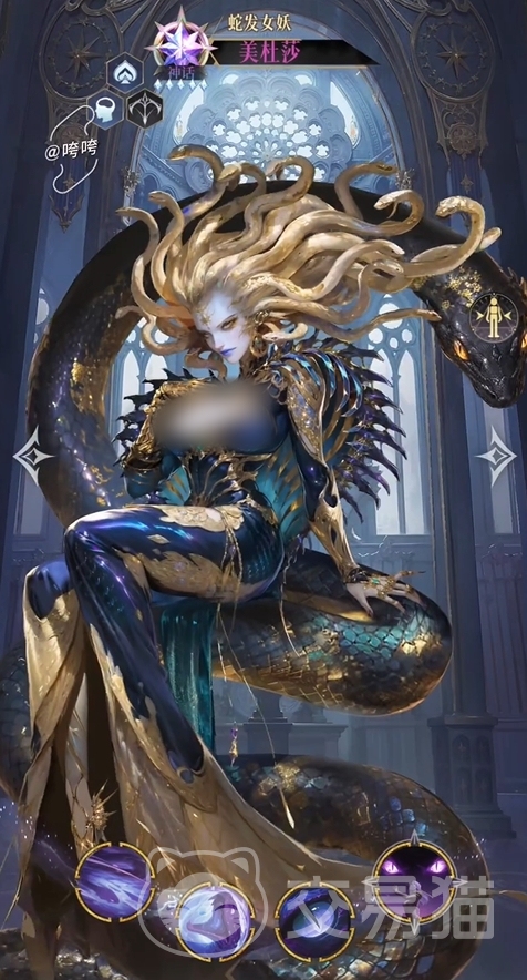 美杜莎的核心能力在于对敌人施加“蛇吻印记”,所有带有该印记的敌方单位在她发动攻击时会受到连锁弹射伤害,形成高效范围输出。此外,该印记还能降低目标的攻击速度与能量回复效率,有效削弱敌方持续作战能力。她的另一个技能“石化之眼”可控制前方区域内的多个敌人,并削减其受到的治疗效果,进一步限制对手的恢复手段。