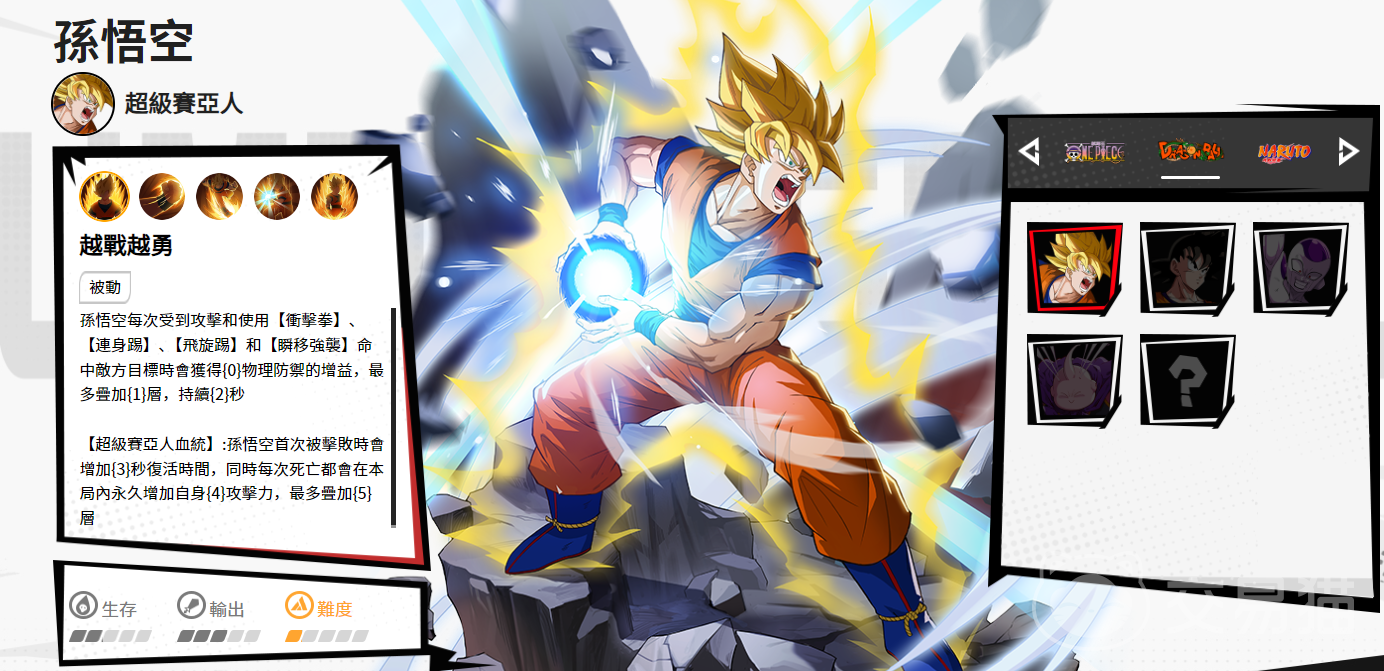 《漫画群星大集结》是由集英社正版授权的快节奏MOBA类手游,汇聚了《龙珠》《海贼王》《火影忍者》等多部经典动漫中的角色。那么在众多角色中,孙悟空的表现究竟如何?作为龟仙流门下的赛亚人战士,他凭借独有的“界王拳”机制与战斗中可触发一次的复活能力,在当前版本中稳居T0级别核心位置。本文将从角色定位、技能解析、天赋搭配到实战应用,全方位解读这位高爆发近战英雄的竞技价值。