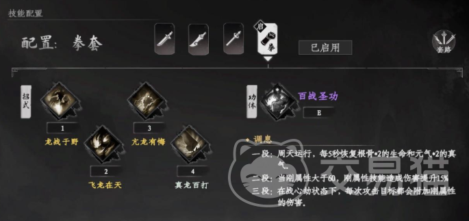 内功的选择直接决定降龙流派的成长上限,建议围绕三套主流组合进行灵活切换,以应对不同战斗环境。第一种为常规输出路线:搭配龙象般若掌与百战圣功,可提升15%外功伤害,同时百战圣功额外提供8%防御力与10%攻击力加成,全面增强生存与输出能力,适合日常任务及副本挑战。第二种为暴击强化路线:选择龙象般若掌配合天魔大法,显著提高暴击率,在短时间内释放出成倍增长的爆发伤害,再结合技能中的无敌帧机制,实现高效斩杀。