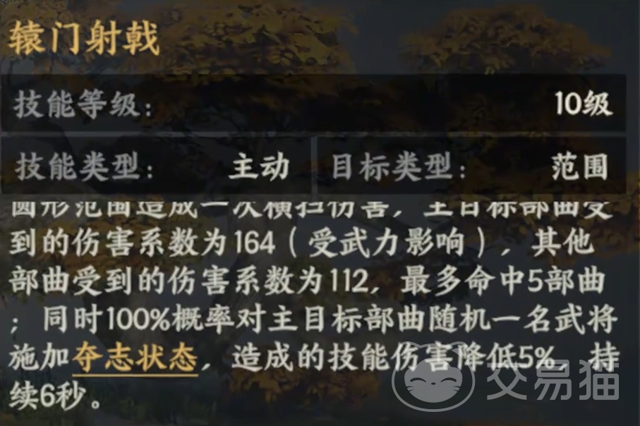 主动技能“方天画戟”是其核心范围输出手段,消耗2点策略值,对前方直线三格内所有敌军造成155%攻击力的物理伤害,并附带50%概率施加“撕裂”状态(每回合损失施法者攻击力30%的生命值,持续2回合)。该技能冷却时间为3回合,适用于清场与压制群体目标。释放时建议优先覆盖多个敌人,并尽量选择已行动过的单位释放,以防对方通过回复手段解除负面状态。配合被动连击,常可在一轮内重创甚至斩杀脆皮单位。面对高恢复阵容时,“撕裂”的持续掉血效果尤为致命。终极技能则是其最具威慑力的单体终结技,消耗3点策略值,对单一目标造成高达280%攻击力的巨额伤害,并附加“震慑”效果(使目标下回合无法行动)。此技能冷却长达5回合,但可通过特定装备或天赋缩短至4回合。作为目前游戏中单次伤害系数最高的技能之一,通常用于秒杀敌方核心输出或辅助角色。