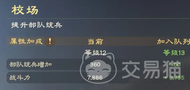 在开荒期需重点关注两个核心建筑:校场与太学府。校场直接影响部队容量,是提升战力的关键途径之一;同时太学中的人口科技与武将等级也会影响兵力上限。此外,太学府中的科技研究尤为重要,必须尽快解锁二级兵种和三级兵种,这将显著增强队伍战斗力,决定后续推图效率。
