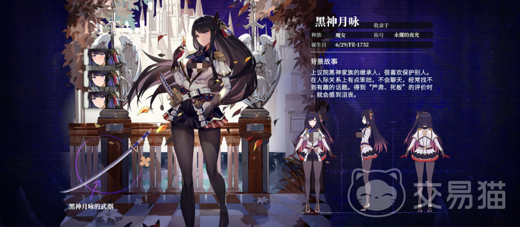 被称为“永恒的夜光”的她,是上议院黑神家族的继承者,性格冷静寡言,却以实战能力著称。即便在初始状态下,她的生命值也处于较高水平,具备一定的承伤能力,能够胜任前排作战任务。虽然基础攻击力看似普通,但随着等级提升,各项属性均有显著成长,适合新人玩家逐步培养。