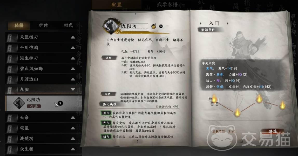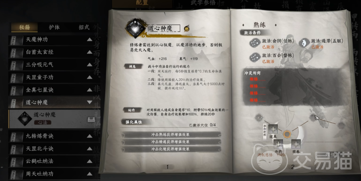 部分经典心法依旧保有极高的实用性,如千金诀、七伤拳、庄周北冥功、太幽术以及九阴等。其中,“千金诀”因主线通关后即可获得,且具备可观的伤害加成,成为新手阶段性价比突出的选择。