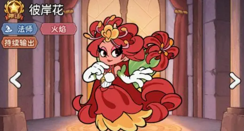 彼岸花是一名以持续灼烧为核心的法师英雄。她的终结技可对单个目标施加持续10秒的灼烧效果,期间每0.3秒造成5%攻击力的伤害。“焚心”技能允许灼烧叠加至最多4层。5级时解锁“蔓延”,当被灼烧目标死亡后,该负面状态将传递给两个随机敌人。20级时激活“灾异之火”,使灼烧额外造成目标3%最大生命值的伤害。