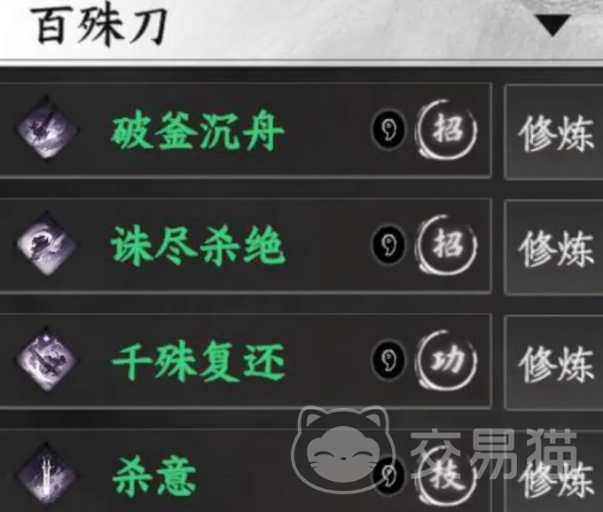 想要获得此刀法,可选择加入长旌军并晋升为内门弟子后兑换;或在将门虎子剧情中不向段鸿鸣汇报,直接击败杨恒即可获取。技能“破釜沉舟”以消耗5%当前血量为代价,对目标造成1.5倍基础伤害,适用于高风险高回报场景。“诛尽杀绝”可在持续时间内赋予角色增益状态,当攻击带有负面状态的敌人时,伤害直接翻倍。被动“杀意”使周围所有敌方单位受到的伤害提升12%。内功方面,被动牺牲50%防御换取30%攻击加成,主动效果提供5%吸血能力。整套体系专注于极致输出,属于T0级别的阴系刀法,但需注意必须配合能施加负面状态的其他武学才能发挥最大效能。