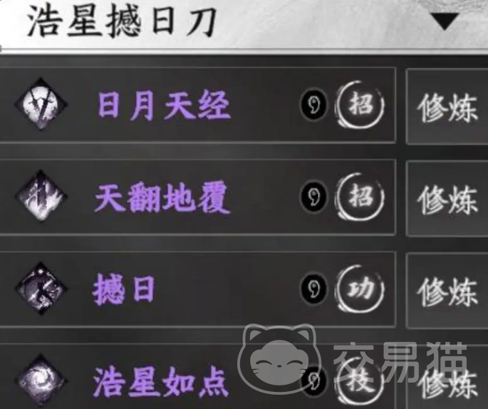该武学可通过将门虎子任务线,在小石镇选择放过被捕匪徒获得;亦可在加入狂刀门并成为关门弟子后进行兑换。其招式“日月天经”可对前方扇形范围造成伤害,并额外附加自身已损失生命值比例的输出,适合搭配自损类技能联动。“天翻地覆”则具备多段打击效果,命中目标后使其攻击力下降25%,有效削弱敌方输出能力。被动方面具备无视防御特性,内功被动每次攻击增伤10%,最多叠加至10层,总计提升100%伤害。主动技能可解除所有控制状态,并提高自身20%伤害。作为阴系内功刀法,整体机制全面,爆发与功能性兼备。