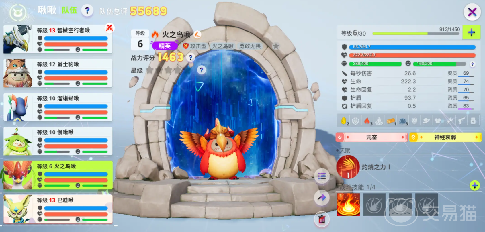 火之鸟啾栖息于沙漠地带,等级达到15级即可进行捕捉,获取时间早且实用性高,是前期过渡阶段的理想输出单位。作为火属性角色,其普通攻击具备高额单体伤害,天赋技能可提供持续性的灼烧效果,在挑战机甲或领主类敌人时表现尤为突出。建议优先培养攻击资质达到90以上的个体,确保即便进入游戏后期仍能保持竞争力。