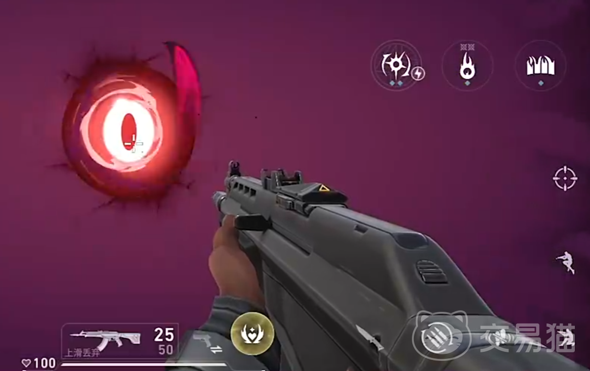 芮娜的一技能“睥睨”允许她投掷出一颗可被破坏的虚灵之眼,该装置飞行一段距离后会停留在场地上。任何看到这颗眼球的敌人都会陷入视野收缩状态,严重影响其观察与判断能力,从而为芮娜创造进攻或撤退的有利条件。