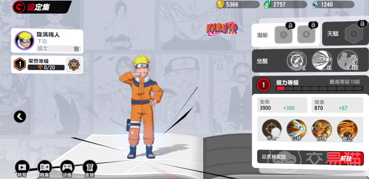 定位为近战战士的鸣人,擅长中近距离压制。普攻会对前方敌人造成伤害,并召唤分身向前冲刺撞击目标。当生命值低于50%时,其被动将激活,使子弹能量回复速度提升50%,提高逆境反打能力。“螺旋丸”技能允许他突进一段距离并在终点爆发范围伤害;“影分身”则生成一个属性按比例继承的复制体,自动攻击周围敌方单位,实现双线输出。