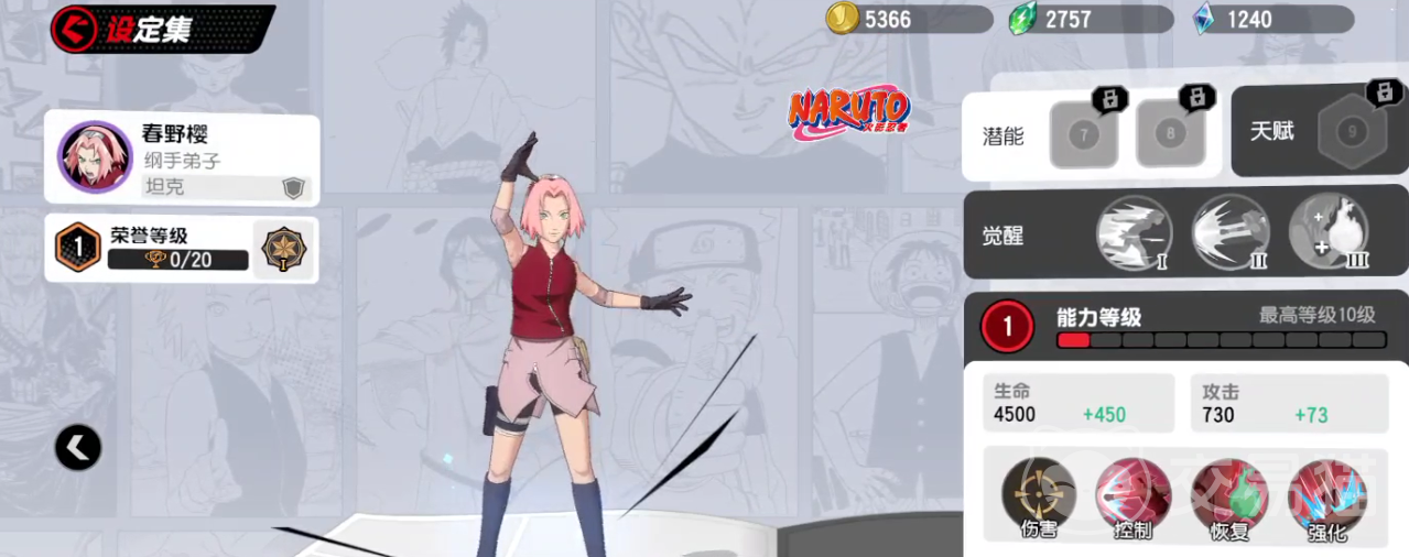 作为团队中的坦克型角色,春野樱具备强大的控场与生存能力。她的被动机制在弹药满载时开始积攒查克拉,蓄满后下一次射击将附带控制效果,可将敌人击飞至自身位置。普通攻击经过蓄力后,能向前方扇形区域释放冲击波造成伤害;若处于“怪力”状态,还会额外触发拉拽效果。技能“猛摔”可抓取最近单位并重摔地面,造成眩晕。而“医疗忍术”则可在关键时刻恢复大量生命值,增强持续作战能力。