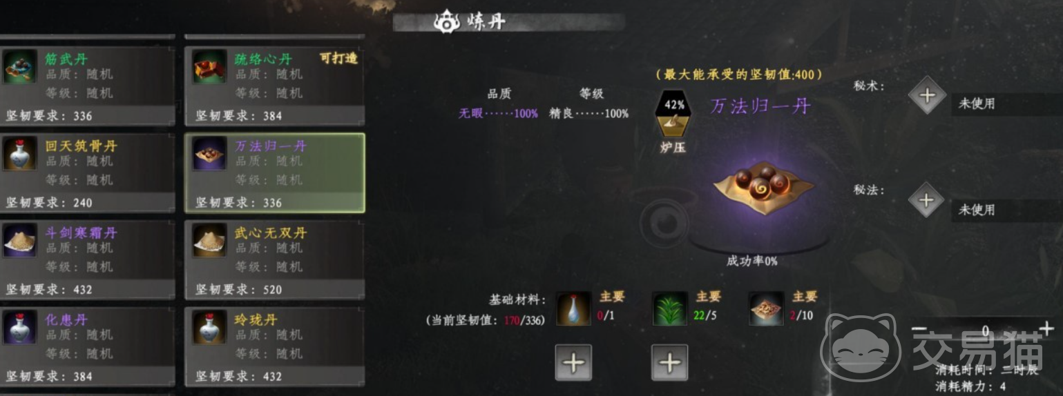 在材料齐备后,还需注意炼丹等级要求:角色的炼丹技能等级必须达到3级或以上,方可成功进行炼制。若等级不足,建议提前通过练习低阶丹药来提升熟练度。完成炼制并服用万法归一丹后,还将触发一系列特殊剧情,进而解锁强力功法“万法森罗”。该功法可显著增强角色各项基础属性,并大幅提升输出能力,是游戏中极具价值的修炼成果之一。