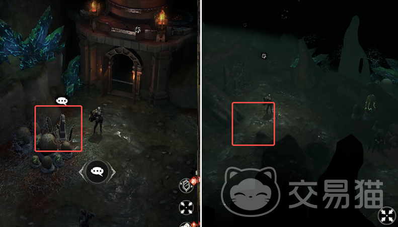 前行过程中会触发军团遭遇战,敌方总兵力约为1730。战斗结束后可通往Boss所在区域。击败Boss后,前往右侧传送点。若角色携带火把或魔力值达到870及以上,便可清除通道中的蛛网障碍。穿越后使用传送点,将发现一个宝箱,其中藏有稀有藏品“贤者之石”。而在地图另一侧的流浪商人处,可以购买到“碎骨钥匙”。使用该钥匙开启左上方的铁门,门后宝箱中存放着“恶臭壶1”的制作图纸,并同时解锁隐村的传送锚点。