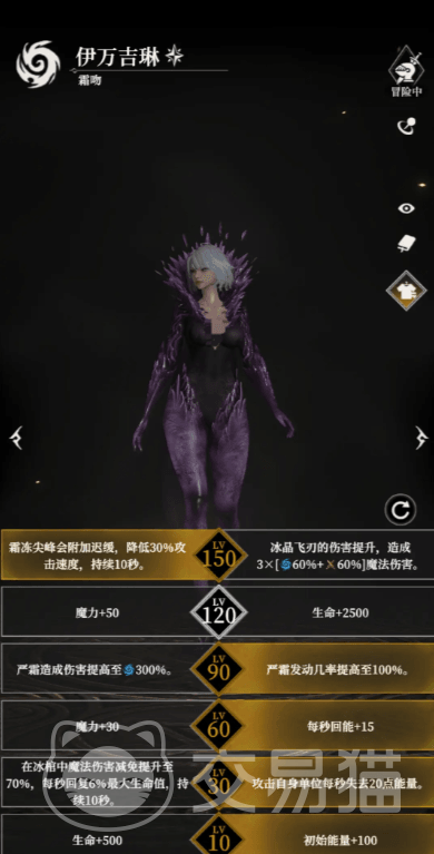 在《地下城堡4》中,霜吻(又名伊万吉琳)是一位极具魅力的角色,她拥有银灰色的瞳孔,在夜幕降临时对各类罪人执行审判。无论是贪婪成性的盗贼,还是侵吞救济金的贵族,都无法逃脱她的追猎。许多玩家被她冷峻的形象所吸引,想要入手却对其实际表现心存疑虑。接下来将详细解析霜吻的技能机制与实战强度。
