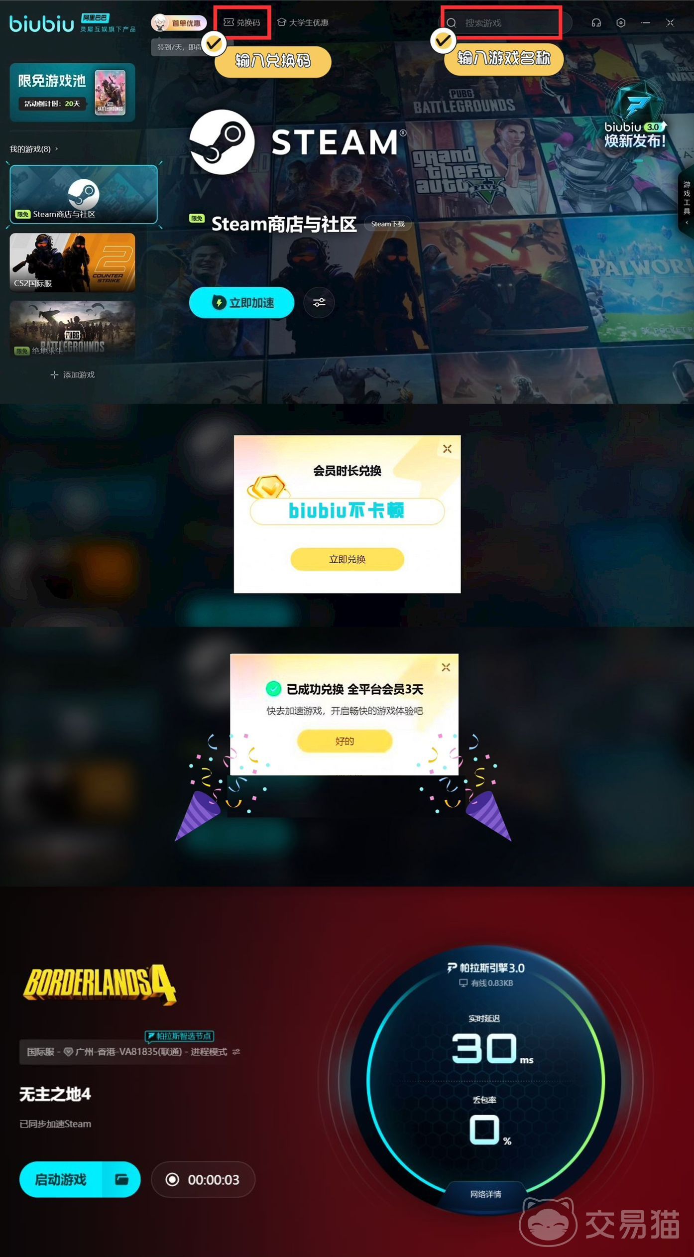 本次系统升级特别邀请国际顶尖选手Aixleft参与调校优化,针对帕拉斯引擎通信架构进行精准适配,显著改善数据传输效率,有效减少延迟与卡顿现象。新用户注册即可获得平台赠送的24小时免费加速时长,输入兑换码【biubiu不卡顿】还可额外领取3天加速服务。