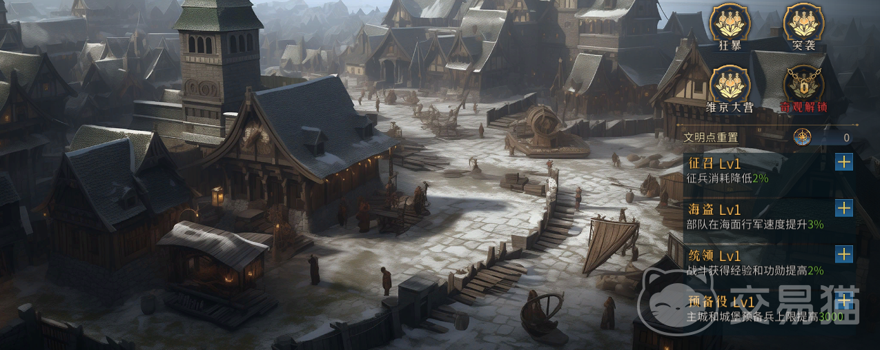 当资源条件允许时,应尽快建造维京专属建筑“维京大营”,只需消耗一定数量铜币,即可提升兵力上限,并解锁“鼓舞”技能。这一机制简化了战斗管理流程,非常适合新人玩家理解和运用。组建约5支部队后,便可开始向外扩张。由于维京文明在后期优势减弱,因此需把握前期窗口期,积极攻占AI控制的中立城池或实力较弱的对手领地,抢占战略要地。作为新手,集中精力对抗AI是稳妥且高效的选择。