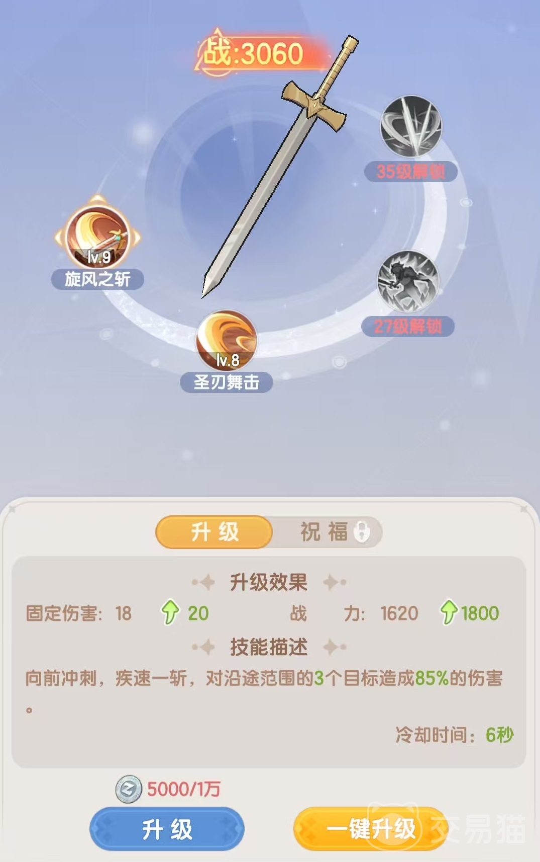 从技能体系来看,剑士共拥有四项主动技能。首个技能为“旋风之斩”,施展时向前突进,并对路径上的至多三名敌人造成伤害。第二个技能“圣刃舞击”以自身为中心横扫前方扇形区域,命中范围内最多三个目标。第三个技能则是以角色为圆心发动范围攻击,可打击周围四个单位。最后一个为主力爆发技,释放后对前方矩形区域发起强力斩击,最多影响四名敌方单位并造成显著输出。