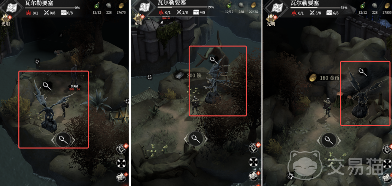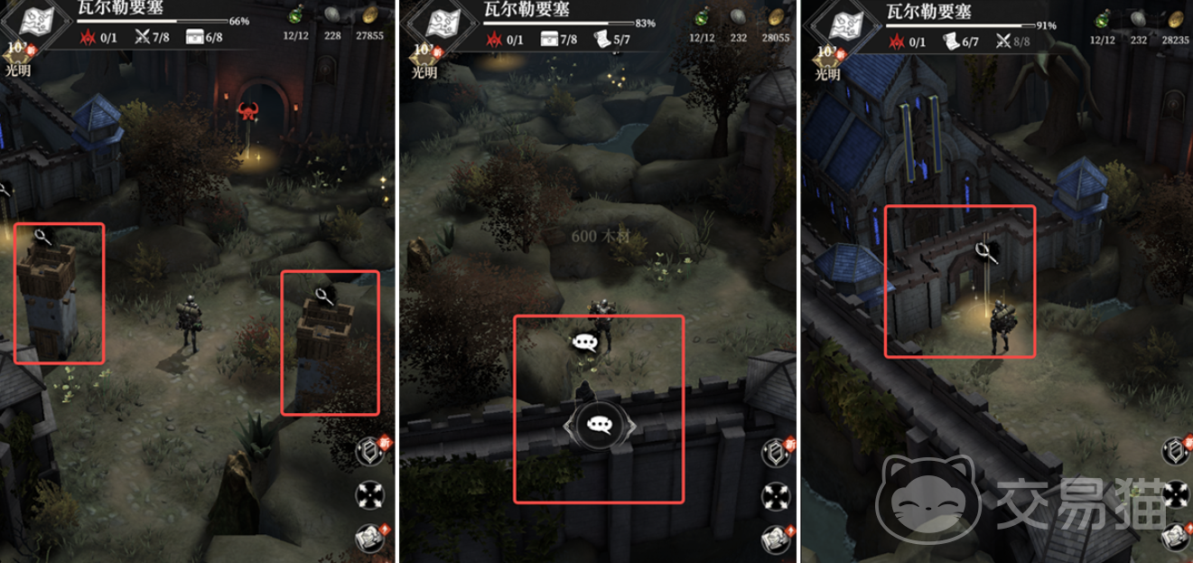 在资源收集方面,登陆后需优先摧毁两座敌方塔楼以获取基础物资奖励。继续向城区右下方探索并击败兜帽修士,有机会获得稀有藏品“深渊之镜”。而左侧城堡区域则设有层层关卡,玩家需在清理杂兵与使用粗制火药炸门之间做出选择,成功进入后可解救被困工匠,直接提升工匠人数+2。