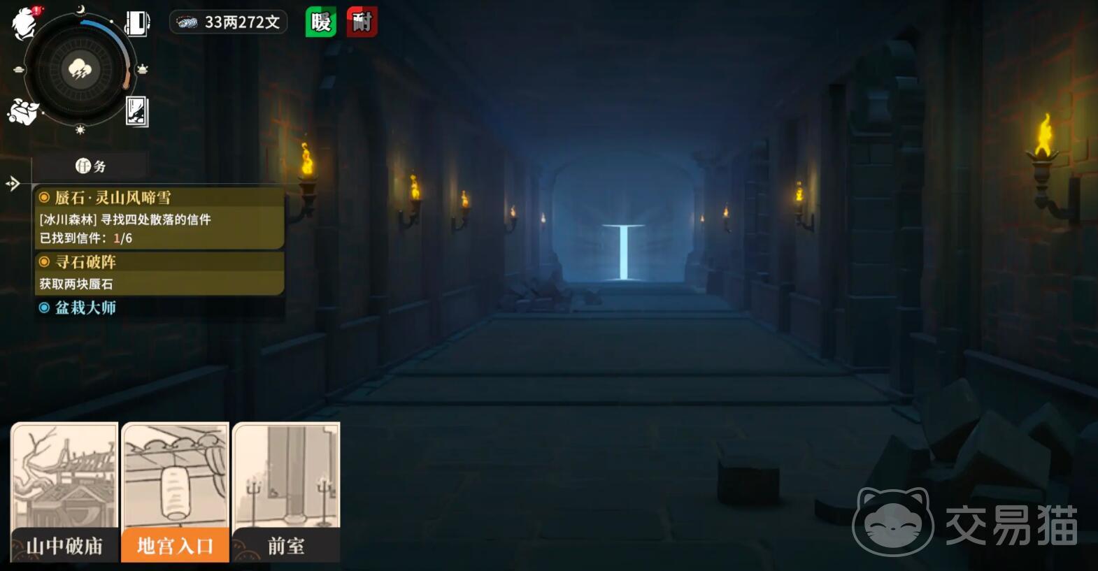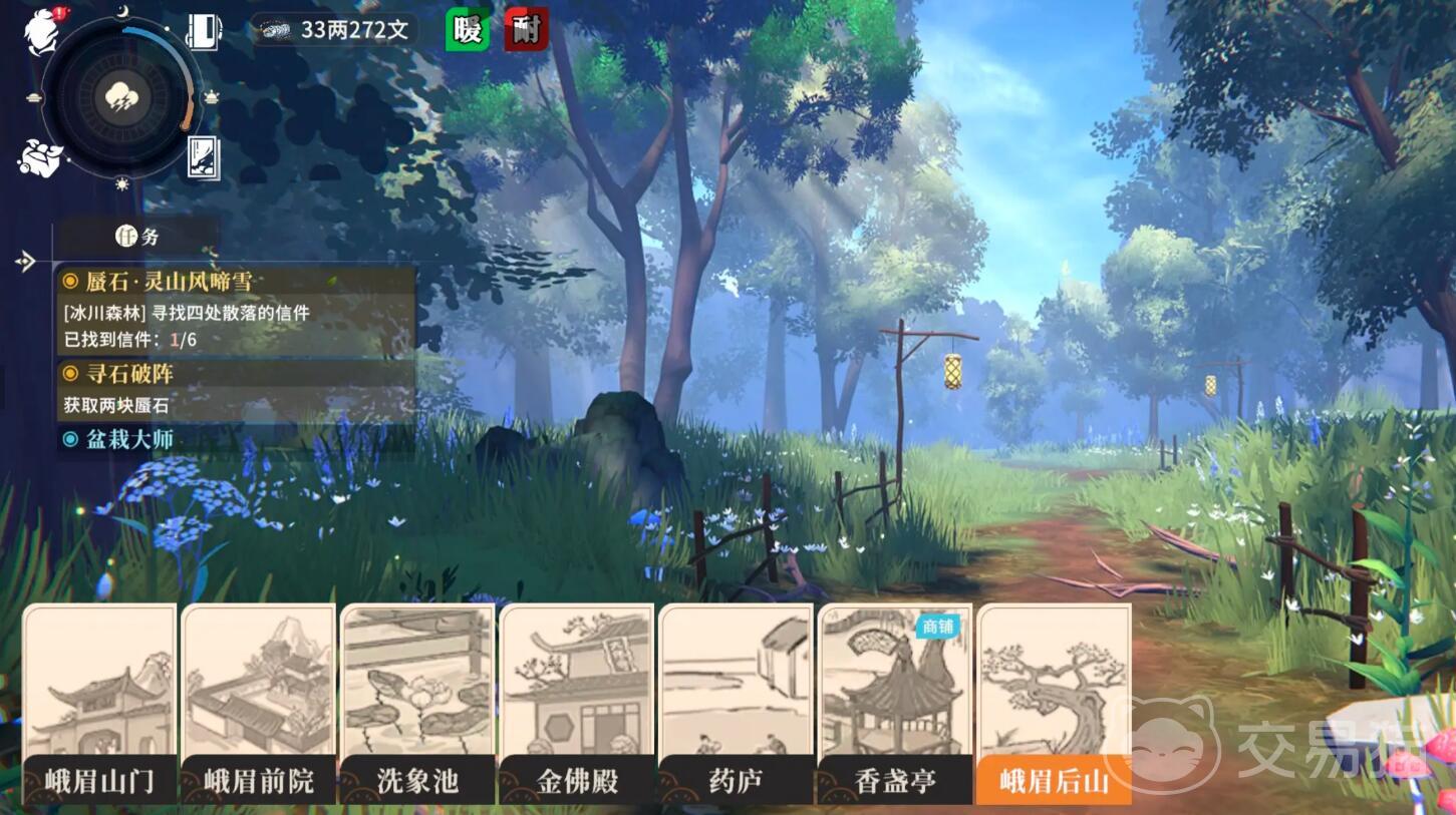 任务开启方式较为直接,当主线剧情推进至相应阶段后,前往灵山指定地点即可接取任务。随后需要收集三类物品:寒玉碎片、青羽和古钟残片。这些道具散落在地图各处,部分藏于隐蔽宝箱中,另一些则由守护怪物持有。寻找时应留意地面发光区域以及环境音效变化,当风声加剧时,通常表示接近目标位置。部分采集点需通过轻功跳跃或攀爬抵达,建议队伍配置具备位移能力的角色,如凌雪或池鹭,以提升探索效率。