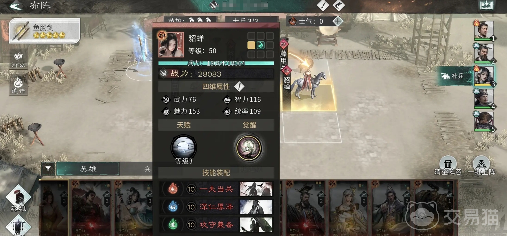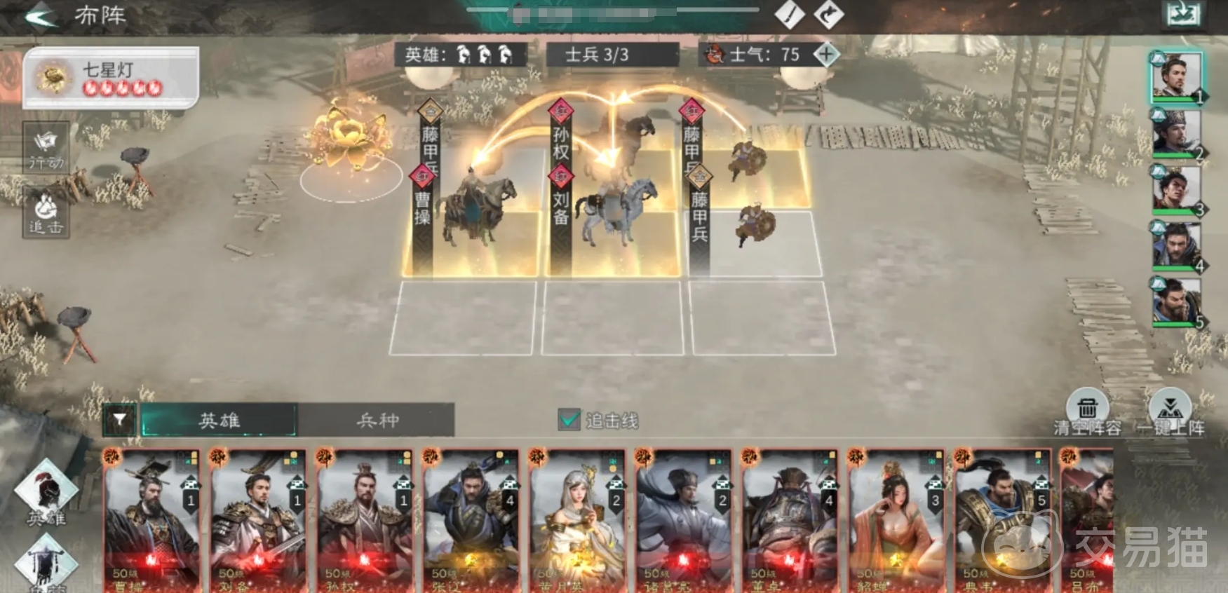 该阵容集结了魏蜀吴三方势力领袖,具备极强的综合战斗力。三位武将在技能设计上互有呼应,既能相互提供属性增益,又拥有不俗的爆发输出,在推图和竞技场景中均有出色表现。刘备通过消耗仁德值实现队伍生命回复,并具备驱散负面状态的能力,有效应对控制类技能。孙权则擅长在属性对比中建立优势,其被动特性随战斗时间延长不断叠加属性,越战越强。曹操作为主要输出单位,承担终结残血敌人与制造高额爆发的任务,确保战斗节奏掌握在己方手中。