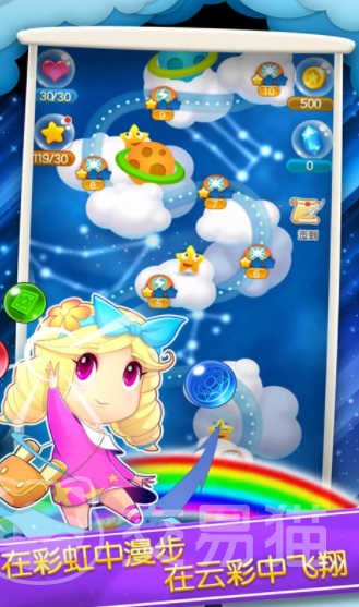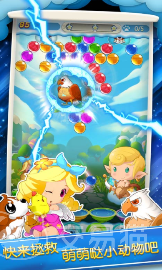 随着部分泡泡被清除,剩余泡泡的位置会发生位移和重组,因此玩家不仅要关注当前可消除的目标,还需预判后续结构变化,合理规划发射顺序。通过巧妙操作,可以让更多同色泡泡聚集并连通,从而实现高效清理。此外,多个关卡中设有被困在泡泡中的小动物,成功消除周围泡泡即可将其解救,增添了解谜与收集的乐趣。整个游戏画面色彩丰富,场景设计充满童话感,营造出轻松愉悦的挑战氛围。