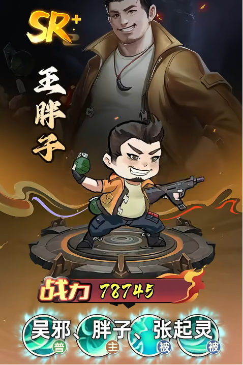胖子依旧扮演着主力坦克的角色,若与吴邪、三叔共同出战,即可触发吴家羁绊,增强全队战斗力。