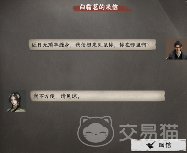值得注意的是,即便游戏内的飞鸽传书提示白霜茗位于云萧山庄,实际前往该地也可能无法发现其身影。这种情况下,推荐使用飞鸽传书中的“我要拜访”功能,尝试通过系统引导触发她的出现或开启对话窗口,避免因剧情卡顿导致NPC永久不可见。