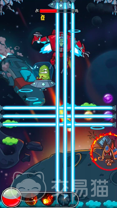 视觉呈现上,游戏采用竖屏手绘漫画风格,整体画面简洁明快,营造出轻松又不失紧张感的游戏氛围。UI布局清晰合理,操作按键集中于右下区域,便于单手操控。战斗时的弹幕特效绚丽夺目,全屏爆发瞬间带来强烈的视觉冲击力。