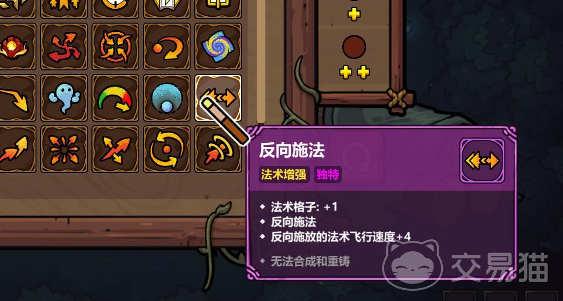 反向施法(飞行速度+4,施法方向反转):正面属性被负面机制严重抵消,常规操作下极易导致走位失误和输出延迟。仅在“龟缩炮台”类特殊build中有应用空间,其他场景下建议避免选用,以免影响整体战斗节奏。