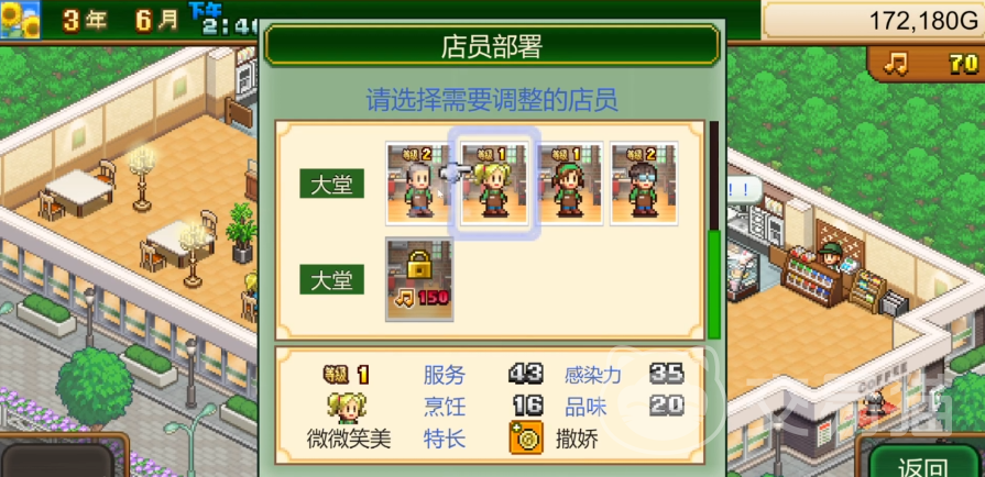 人员管理方面,需根据当前营收情况招聘服务员、厨师及清洁工,确保店铺高效运转。尤其清洁工容易被忽视,但店内卫生状况直接影响顾客评分。雇佣时注意员工技能等级越高,薪资成本也相应增加,需结合资金状况做出选择。分配工作时间时应避免空闲或过度加班,保持合理排班,防止效率下降导致顾客不满。
