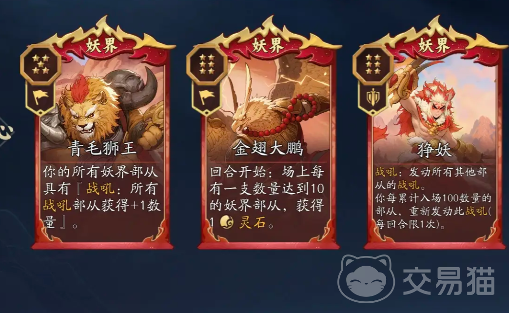 在辅助角色的选择上,金毛狮王是非常值得推荐的一张卡牌,其登场即触发战吼效果,能使所有部队增加一名成员,显著增强站场能力。而狰妖则具备二次激活战吼的能力,能够让其他部属重新触发一次战吼效果(每回合限一次),极大提升了连锁反应的潜力。若短期内难以获取上述角色,也可使用野猪精或狼妖作为过渡替代。总体来看,战吼流虽上手难度较高,但一旦熟练运用,便能在高难度关卡中展现出压倒性的统治力。