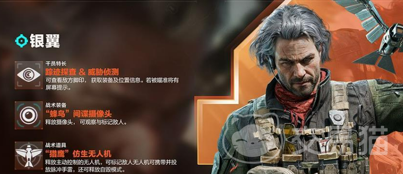备受瞩目的新侦察干员“银翼”正式登场,其技能组合以高科技侦察能力为核心。配备无人机、微型蜂鸟摄像头及EMP手雷,能够有效探测并干扰敌方单位。其终极技能“猎鹰无人机”可在大范围内进行远程侦察,实时反馈敌情信息,辅助队伍制定战术决策。而蜂鸟摄像头则可隐秘部署,精准锁定敌方行踪,即使对手谨慎移动也无法逃脱追踪。