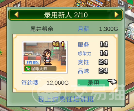 在游戏早期阶段,推荐优先考虑拥有“咖啡大师”或“研究者”技能的员工。前者能有效提升咖啡出品质量,增加顾客满意度;后者则有助于加快新饮品的研发速度,为中后期拓展菜单提供支持。这类员工具备良好的成长潜力,适合长期留用并持续升级。
