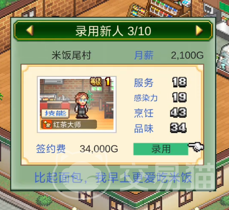 随着店铺等级提升,可提供的饮品种类也会扩展,例如冰咖啡、红茶、碳酸饮料等。针对这些品类,存在对应专精技能的员工。玩家可以选择提前布局,培养具备相关潜力的职员,或等到资金充裕后,直接投入较高成本招募已具备高属性和专业技能的成熟员工。