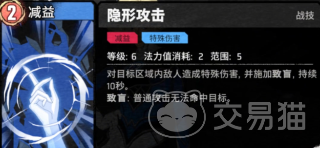 隐形女的一技能为“隐形攻击”,该技能可对指定区域内的敌人造成特殊伤害,并附加持续10秒的致盲状态。处于致盲状态下的目标将无法执行普通攻击,这对于依赖普攻输出的角色具有显著克制效果。这一特性使得该技能在副本推进或PVP对抗中都具备极高的战术价值,尤其适合在战斗初期释放,打乱敌方输出节奏。