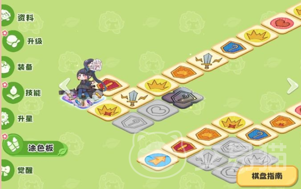 想要快速提升战力,必须重视填色板系统的运用。每位角色都配有专属填色板,通过消耗“蜡笔”道具进行填充可提升全队属性。其中金色蜡笔带来的增益最为显著,但获取极为困难——即便购买50元月卡,通常也需要三到五天才能积累一枚。对于非氪金玩家来说,获取周期更长,因此建议前期使用紫色或绿色蜡笔作为替代方案,逐步推进角色成长。