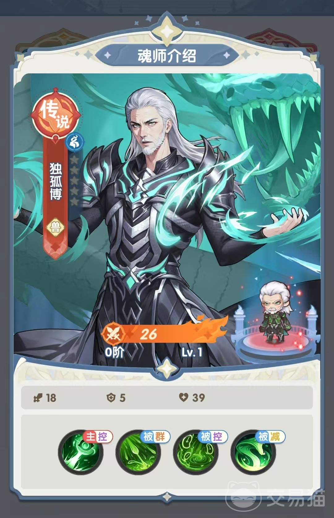 在《口袋斗罗大陆》这款策略卡牌游戏中,独孤博被设计为一名以控制为核心的魂师角色,其技能机制高度还原了原著中擅长用毒的设定。作为传说品质的魂师,尽管稀有度较高,但获取途径相对简单,使得大多数玩家都能较快提升星级,因此在各类阵容中出场频率颇高。
