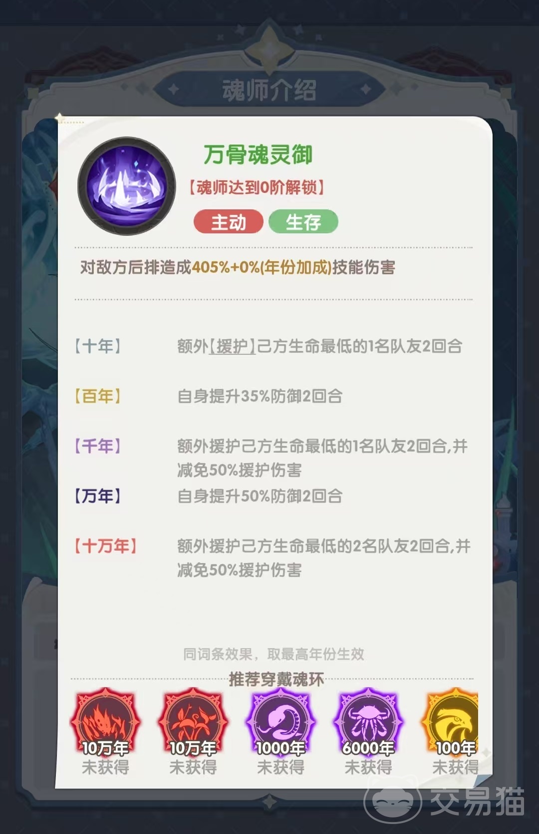 第二个被动则与主动技能联动,在释放“万古魂灵御”时有一定概率激活,使我方全体成员获得20%的反伤效果。这意味着敌人在攻击我方单位时,自身也会承受一部分反弹伤害。不过由于后排输出和辅助本身生存能力较弱,反伤的实际威慑有限,主要收益仍集中在前排单位。随着魂环等级提升,该技能还将额外提供抗暴击属性,进一步增强团队面对爆发型对手时的稳定性。最后一个被动技能在战斗开始阶段立即生效,直接提高100%防御力,随后每回合递减10%,属于典型的开局减伤机制。升阶后还可获得攻击力增益,不仅强化了坦度,也为后续输出创造了条件,尤其克制依赖开场爆发的阵容类型。