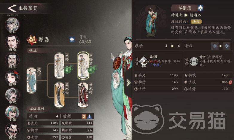接下来是郭嘉,作为一名典型的谋略型武将,他的伤害输出与目标距离密切相关——距离越远,造成的伤害越高,最高可提升原始伤害的40%。这一特性使其在拉扯战和远程消耗中极具优势。二阶技能还带有控制效果,适合编入控制流阵容。随着等级提升,整体作战效率逐步增强,在挑战BOSS副本时也有出色表现,是中后期不可或缺的智将人选。