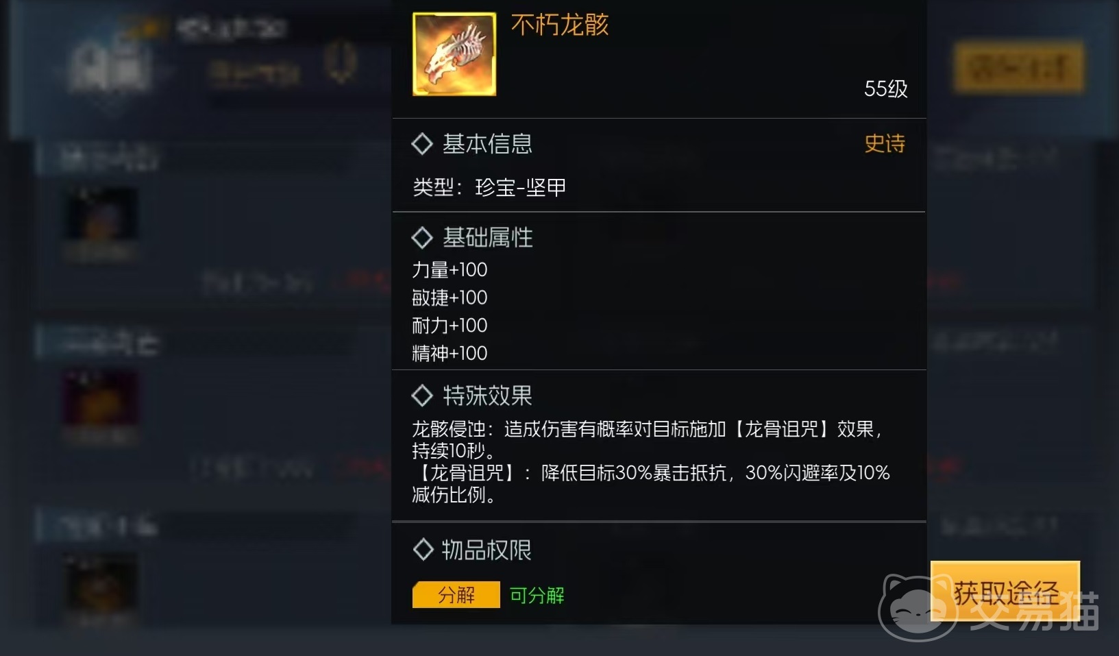 神话级珍宝包含暴龙龙骨、三角龙盾与深渊龙翼,每件提供60点基础属性,具备四条附加属性槽位,并附带强力特效。而史诗级套装由机械龙心、不朽龙骸与破茧青龙组成,每件基础属性高达100点,拥有五条附加属性上限,属于高端玩家的核心配置,通常需要投入大量资源或付费获取。