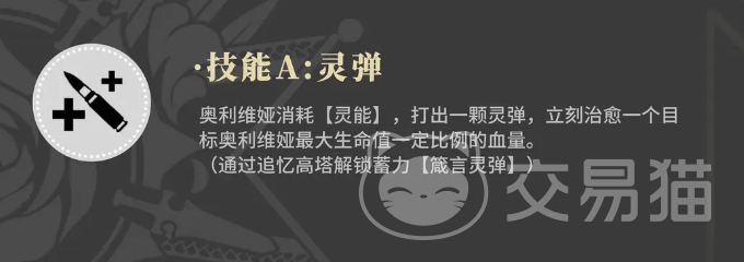 “灵弹”是奥利维娅通过消耗自身灵能值释放的强化弹药。灵能系统是她独有的能量积累机制,当使用该技能时,所射出的每一发子弹均为灵弹,其造成的伤害高于普通子弹,并且在命中目标后可根据奥利维娅当前生命值的百分比恢复一定血量。因此,建议在角色血量有所下降时再启用此技能,以最大化治疗收益。
