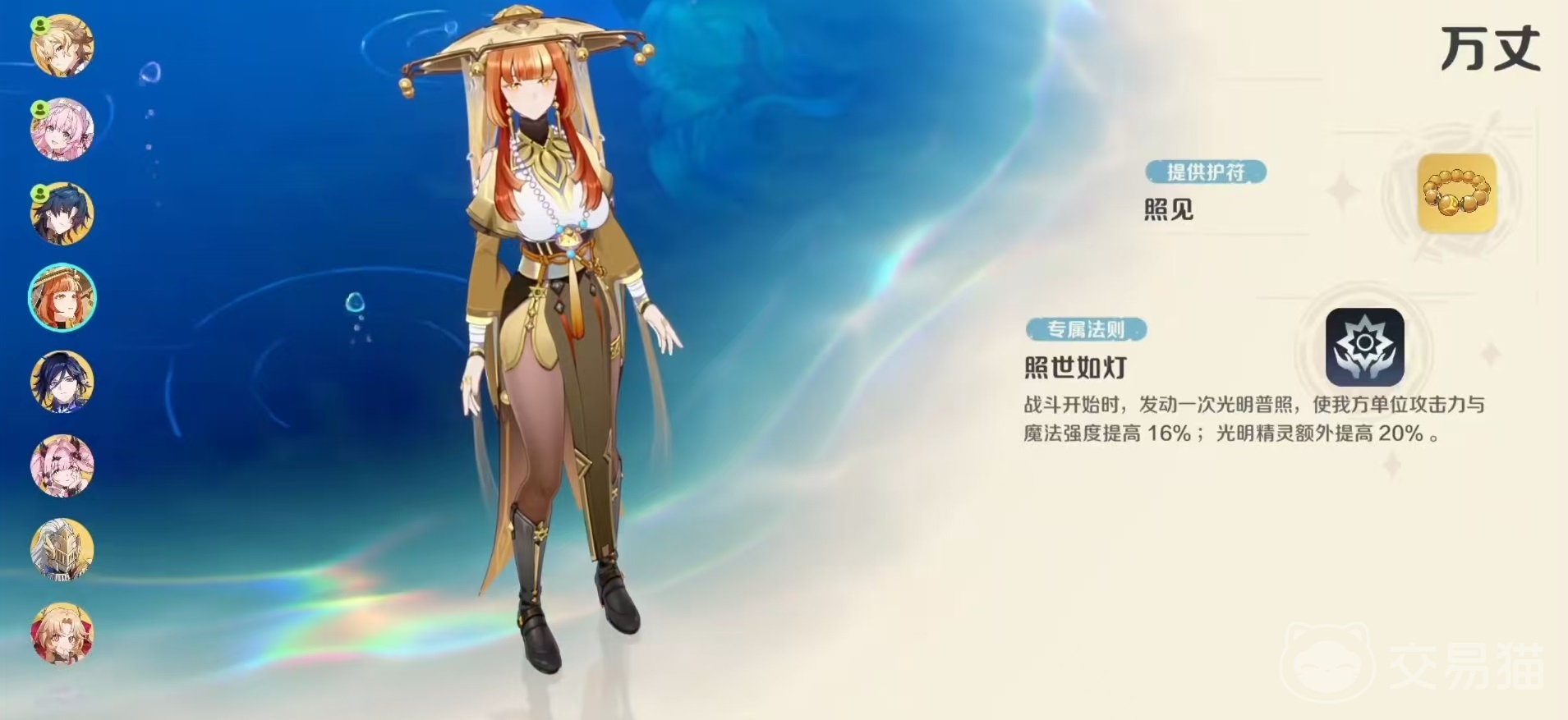 除刃之外,还有多位具备强力专属法则的心像可供选择。例如“九明镜”,其能力可为记忆篆录者赋予专属护符,并使其在战斗开始瞬间直接入场参战,提升前期节奏掌控力。“帕拉雅雅”的法则会在战斗开启时释放爱厌宝钻,轰击场地中央并对全体敌人造成相当于其生命上限20%的真实伤害,适用于追求高爆发开局的阵容配置。而“万丈”的专属效果则是发动光明普照,大幅提升全队攻击力与魔法强度,且光明精灵还将获得额外加成,非常适合搭配光属性体系共同出战。