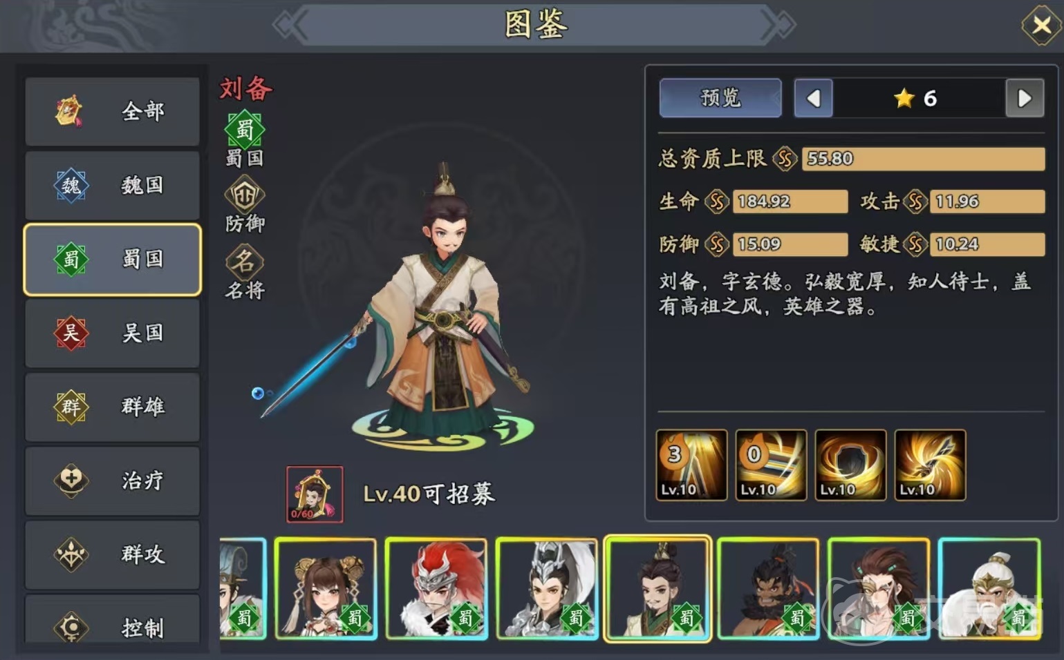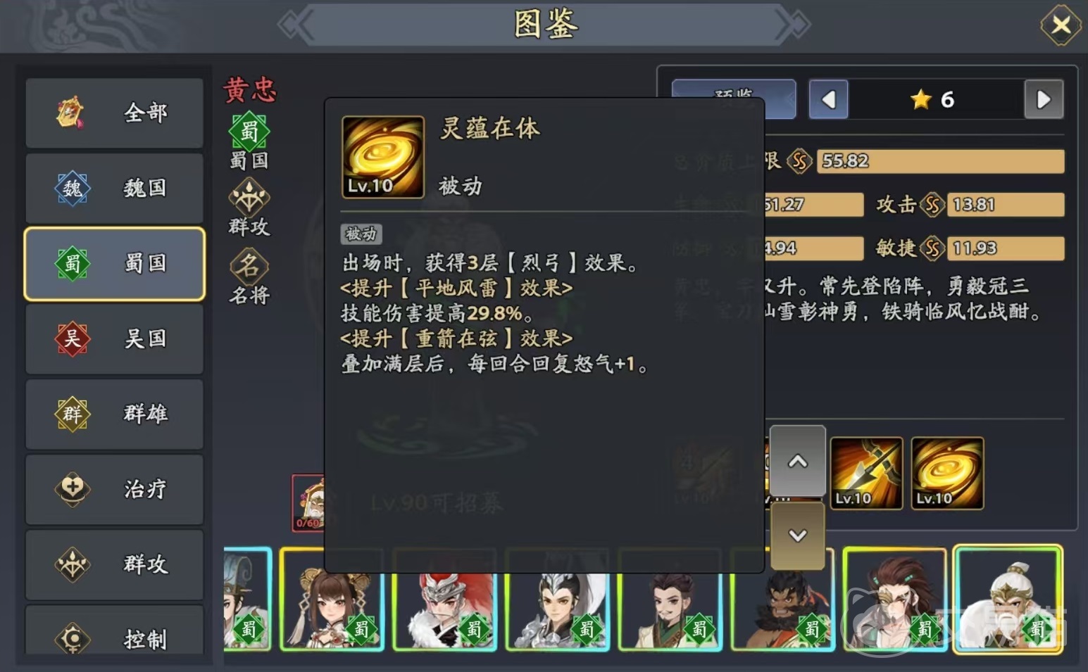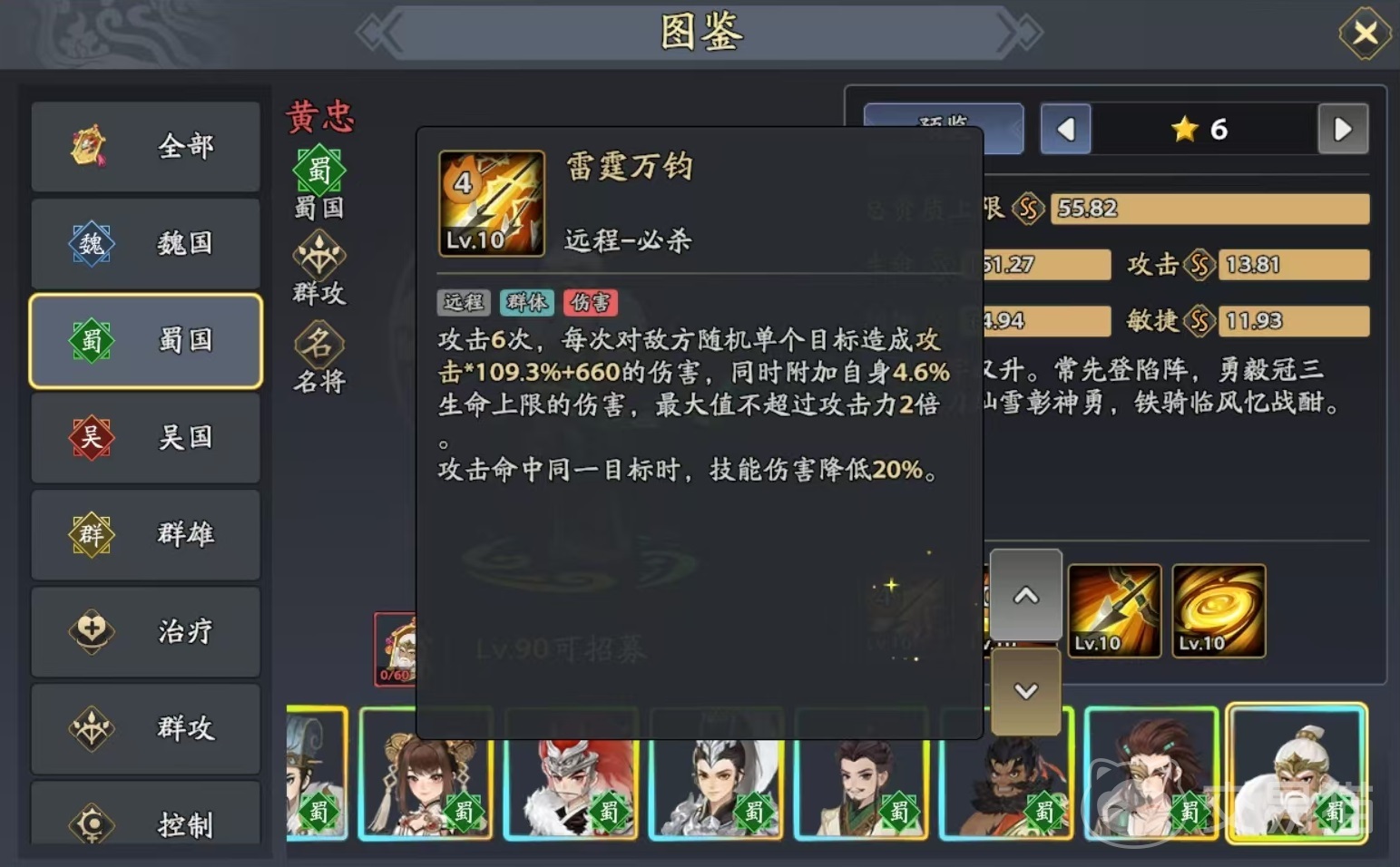 在《三国志异闻录》的武将体系中,黄忠作为蜀国阵营的重要成员,凭借出色的远程输出能力脱颖而出。作为一名以群攻见长的弓兵将领,他在推图和清兵效率方面表现尤为突出,是许多玩家阵容中的核心输出之一。