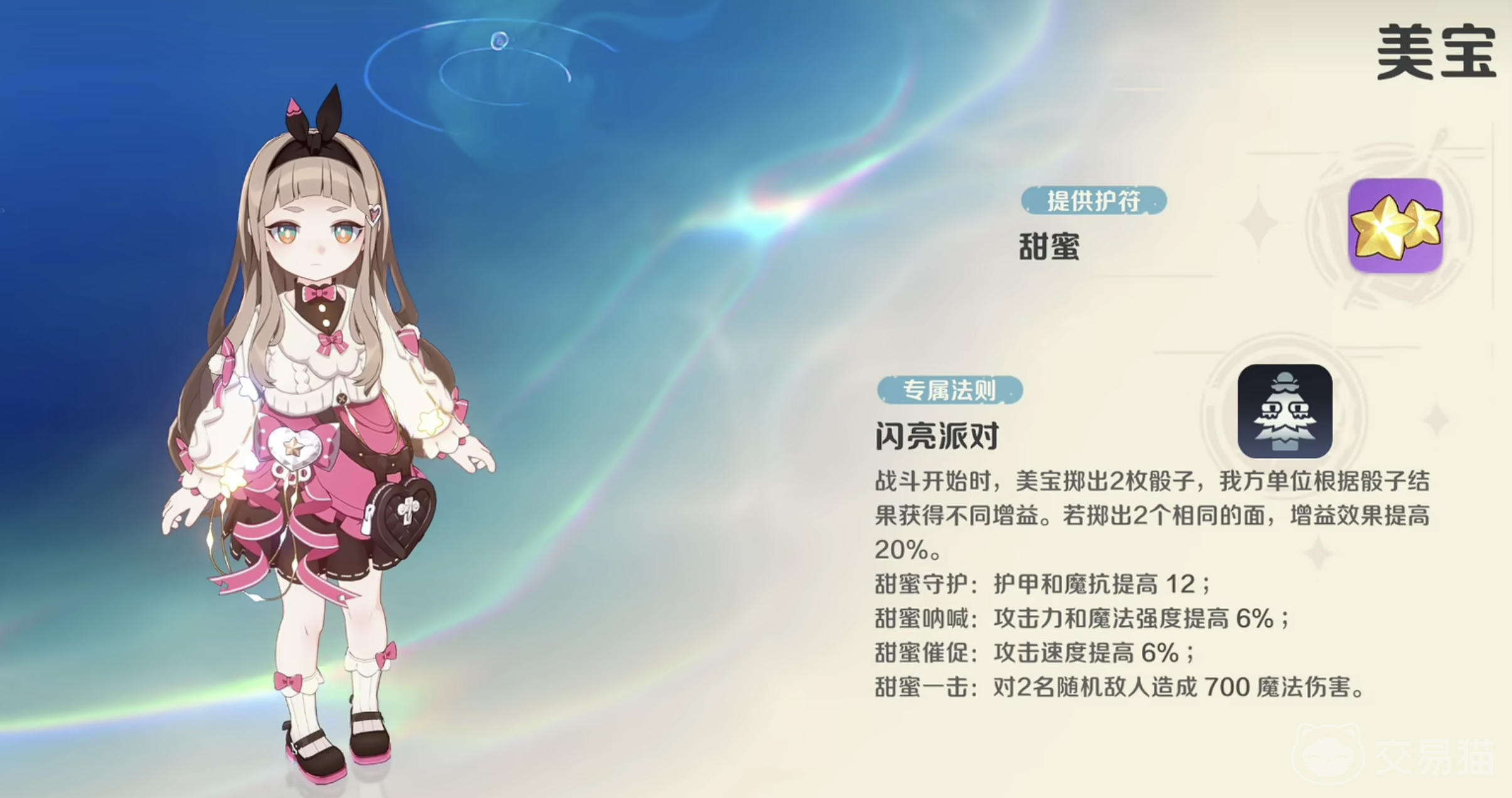 综上所述,崩坏因缘精灵美宝不仅外形讨喜,技能机制也极具战略价值。虽然其增益效果依赖随机判定,但在合适的阵容搭配下,往往能发挥出意想不到的作用。无论是日常推图还是挑战高难副本,她都是值得投入资源培养的重要辅助角色。