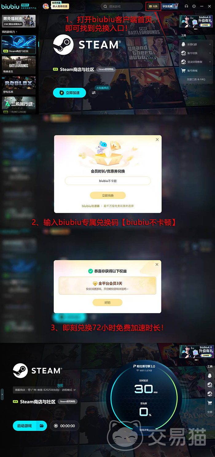 同时,该服务平台还联合知名电竞选手AIxleft完成了全程序深度调优,上线后将开放多项福利活动。新用户注册即可领取24小时免费体验时长,另有通用口令【biubiu不卡顿】可供兑换额外3天加速服务,两项叠加最多可享96小时畅玩权益。